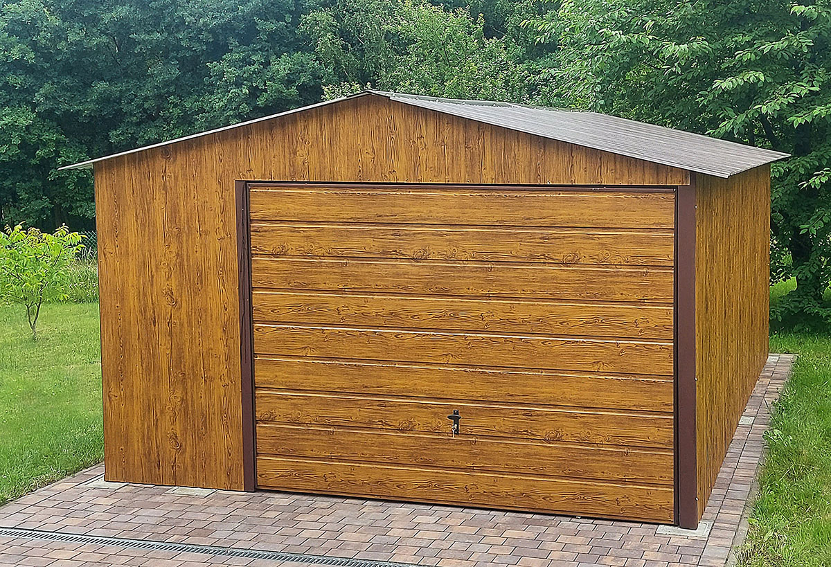 Napisz pierwszą opinię o „Garaż blaszany 4x6 z blachy imitującej drewno ZŁOTY DĄB”