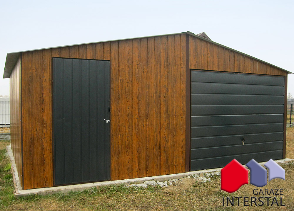 Napisz pierwszą opinię o „Garaż blaszany 5x6 drewnopodobny orzech i grafit szeroki panel”