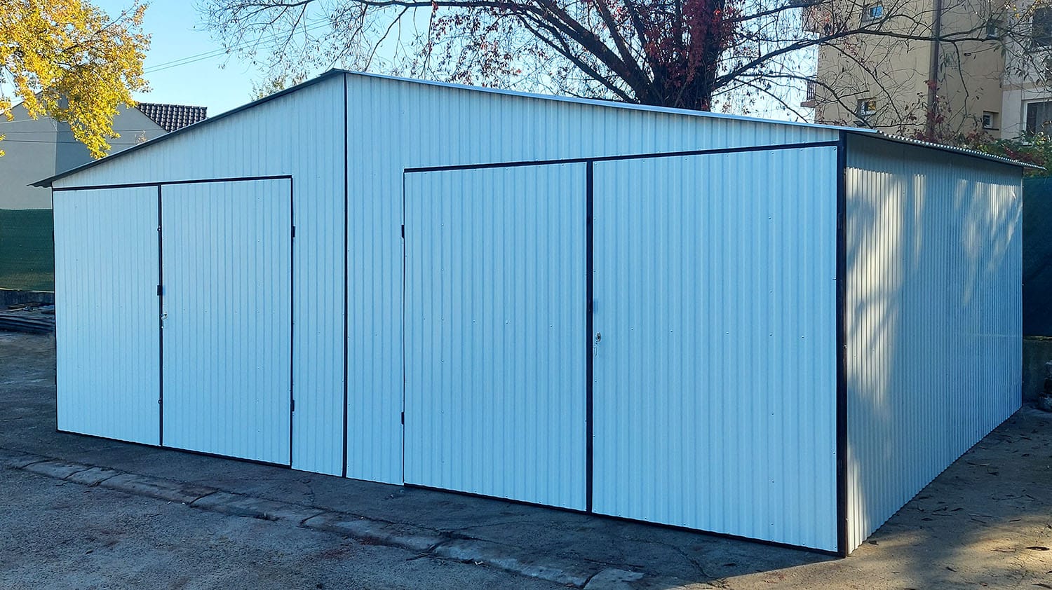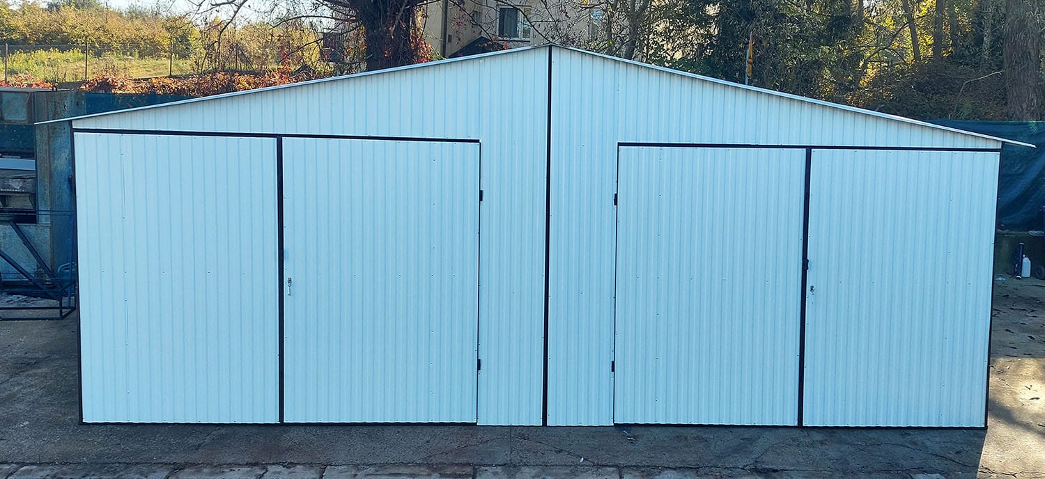 Napisz pierwszą opinię o „Garaż blaszany dwustanowiskowy 7x5 z blachy białej dwuspadowy tani blaszak”